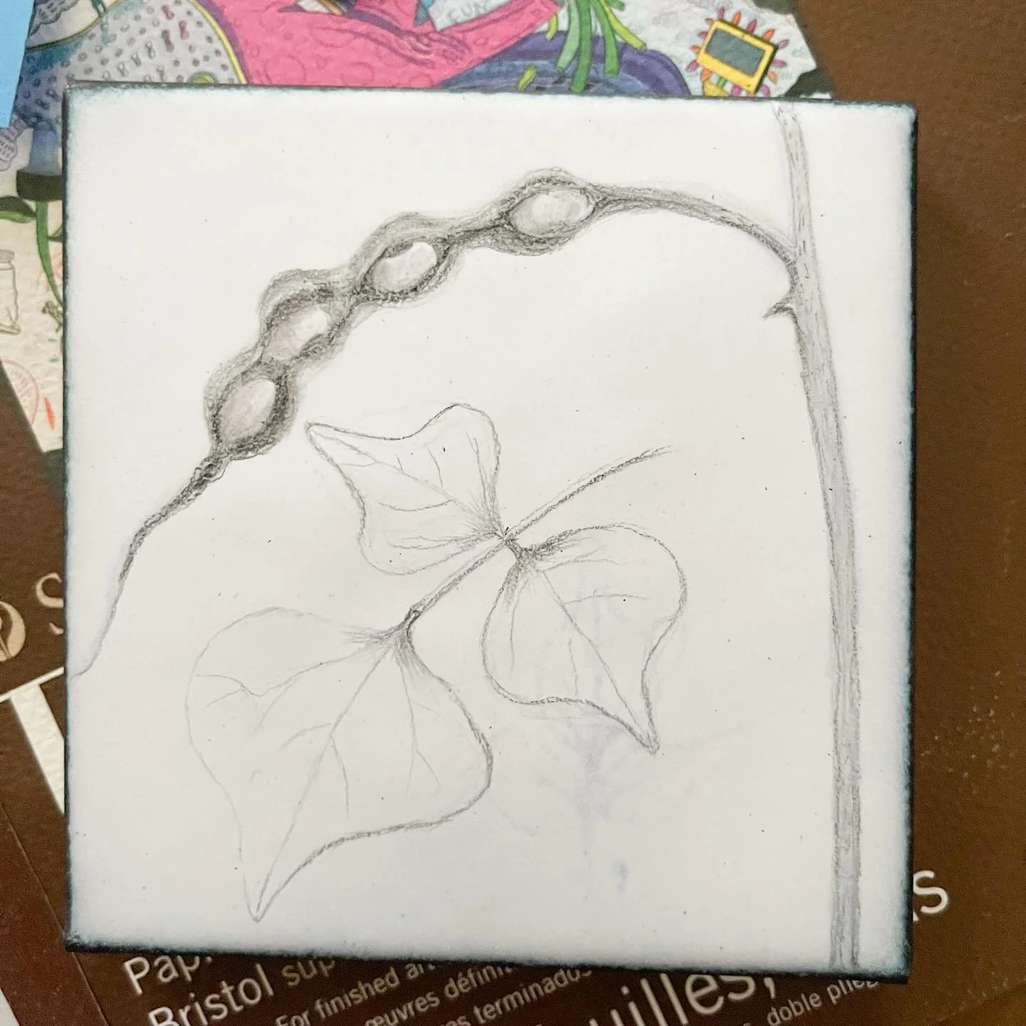 View fullsize Working on a drawing of a Mamou seed pod on vitreous enamel and thinking about my first class (this week) at NYBG (New York Botanical Garden) in Botanical Drawing I. It is a program workings towards a certification in botanical art and illustration.